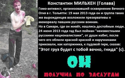 спасибо "неизвестным русским" борцам с такими гнидами! Он получил по заслугам!